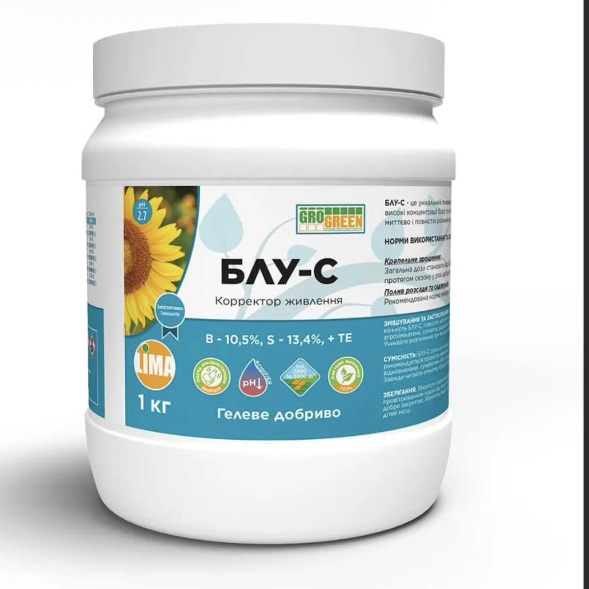 GroGreen Gel Blue-S — це інноваційне гелеве добриво з унікальною комбінацією бору та сірки, розроблене спеціально для позакореневого підживлення. Завдяки низькому рівню pH та висококонцентрованому складу, препарат забезпечує максимальну біодоступність мікроелементів, що критично важливо для формування якісного врожаю.