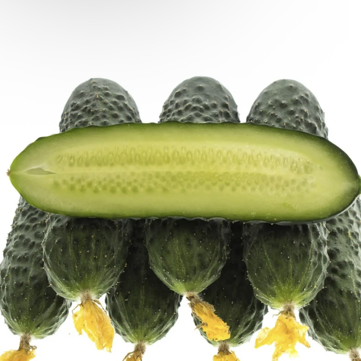 • Ідеальний товарний вигляд: Корнішони мають насичений темно-зелений колір, циліндричну форму та оптимальний розмір (довжина 11–14 см, діаметр 2,5–3,5 см). Вони не переростають у товщину та не стають «бочечками».