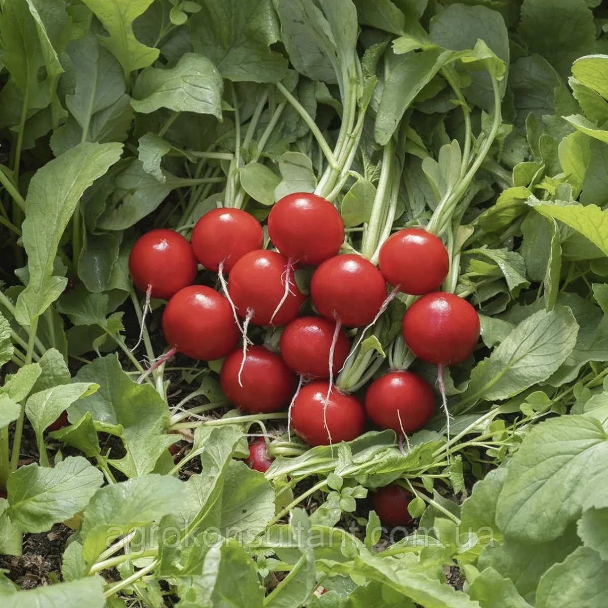 • Рослина: Компактна, з міцним вертикальним листям. Це дозволяє висаджувати редис щільніше, економлячи площу теплиці.
