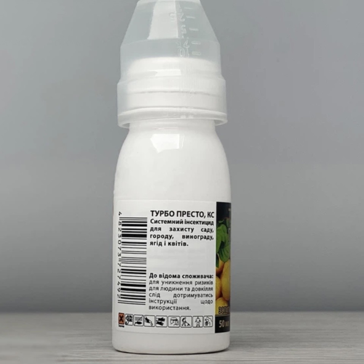 Турбо Престо — це інноваційний трикомпонентний інсектицид для довготривалого захисту овочевих, плодових та декоративних культур від широкого спектра шкідників. Завдяки поєднанню речовин з різних хімічних класів та додаванню синергіста, препарат демонструє миттєвий «нокаут-ефект» та стійкість до високих температур.