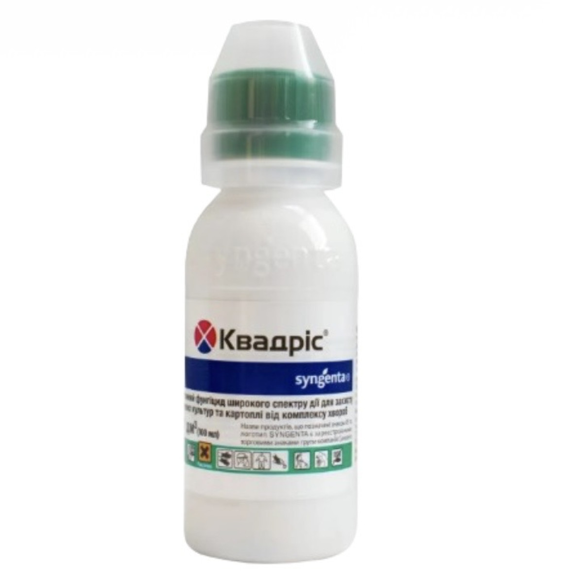 Квадріс — унікальний фунгіцид широкого спектра дії з класу стробілуринів. Препарат має системну, профілактичну та лікувальну дію, а також трансламінарну властивість (здатність проникати крізь листок на його нижній бік). Це забезпечує повний захист рослини навіть у важкодоступних місцях.