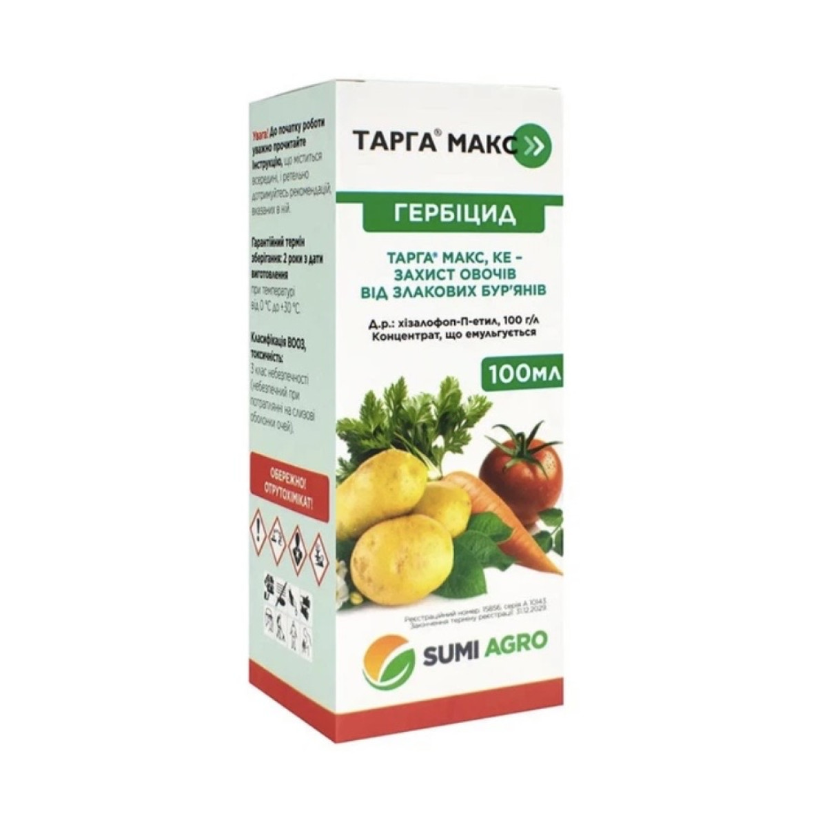Тарга Макс — це високоефективний селективний (вибірковий) гербіцид, створений спеціально для захисту широколистяних культур (овочів, бобових, соняшнику) від злакових бур'янів. Його унікальність полягає в тому, що він «бачить» лише пирій, мишій, овсюг та інші трави, знищуючи їх до самого кореня, при цьому залишаючись абсолютно безпечним для вашої картоплі, томатів чи капусти.